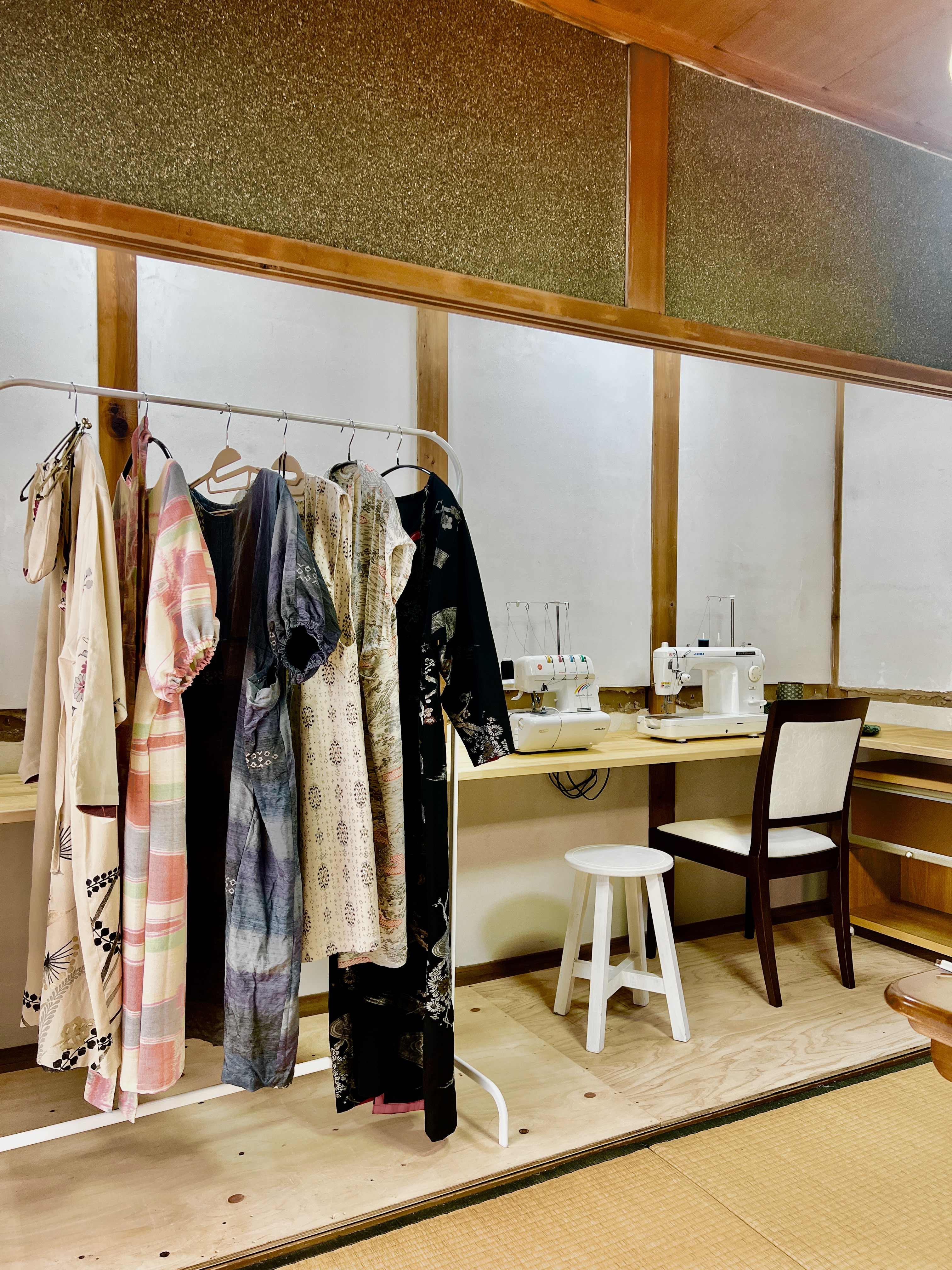 - 押入れをカウンターテーブルに改修しており、展示台やミシンなどの作業スペースとしてもご利用いただけます。