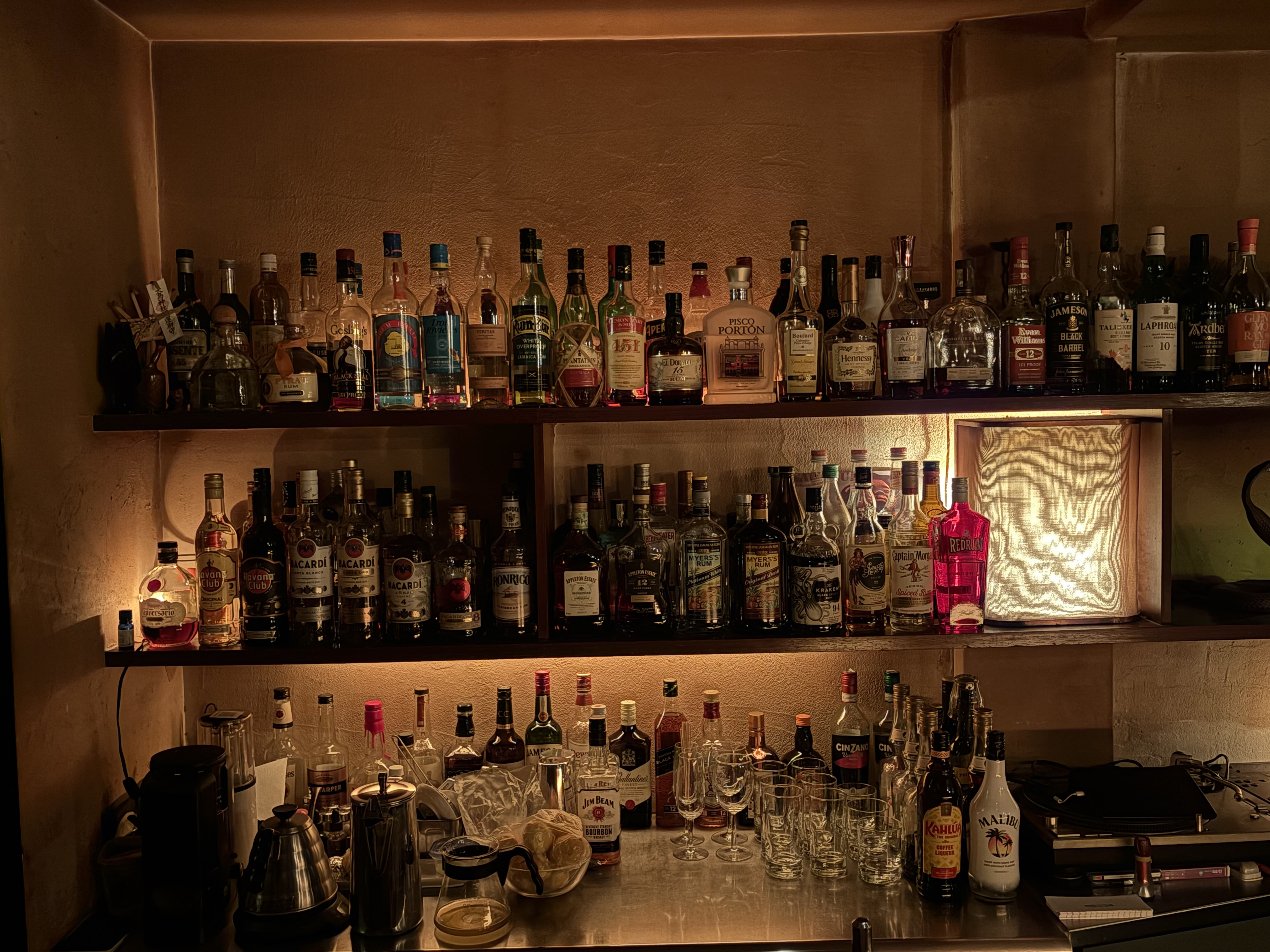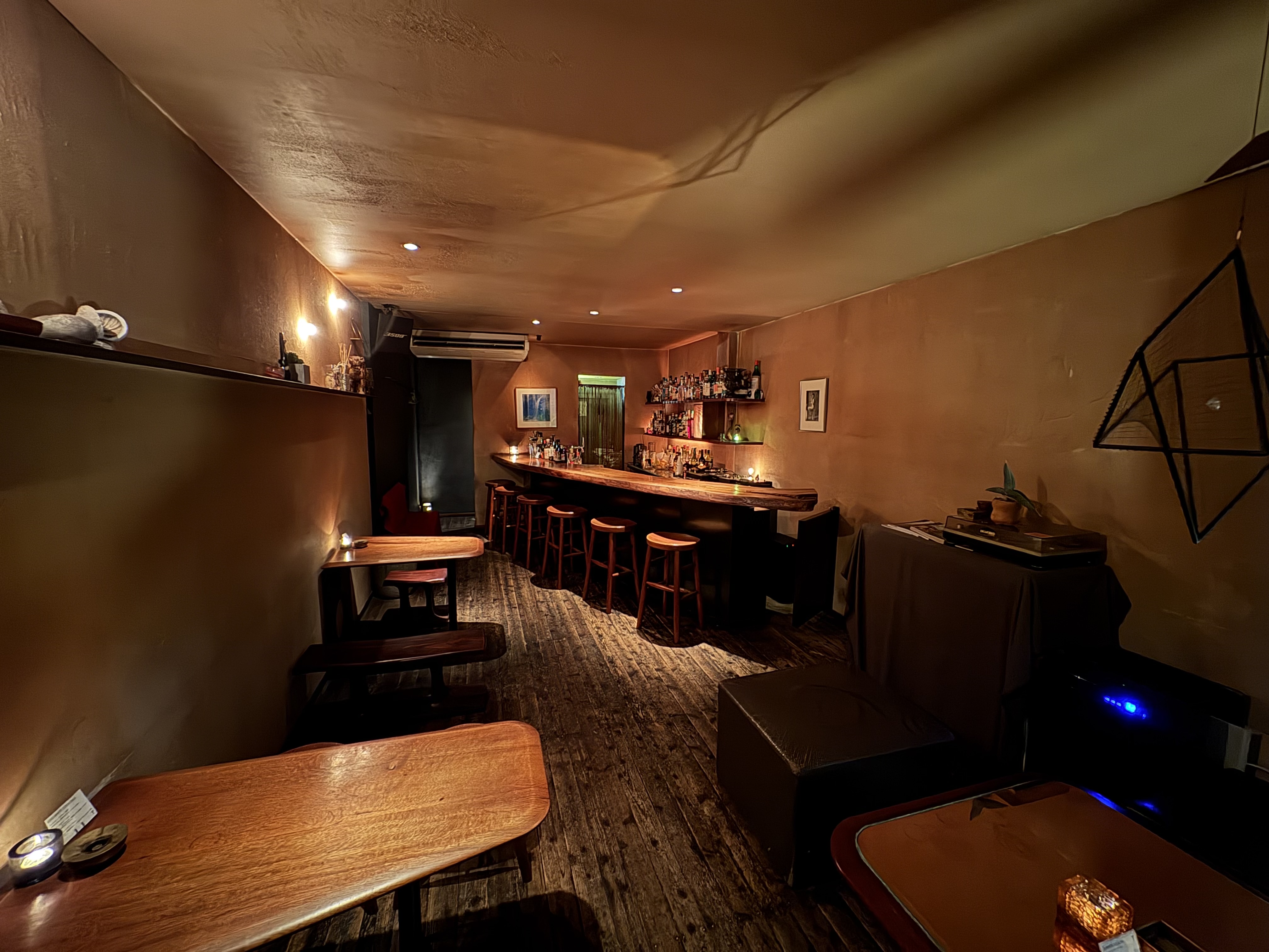 江古田駅から徒歩3分。木目のカウンターと暖かな間接照明が特徴の落ち着いたバーです。