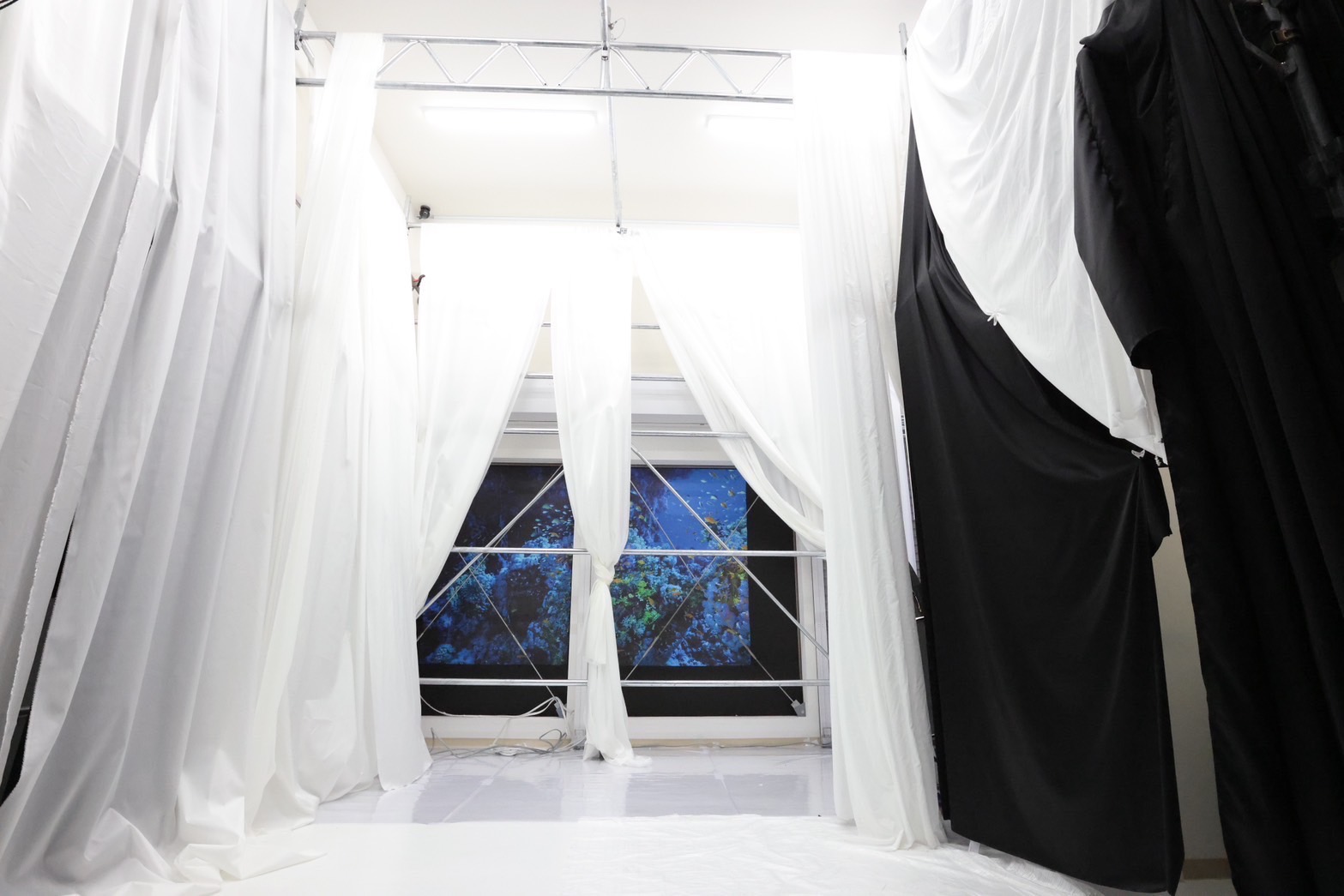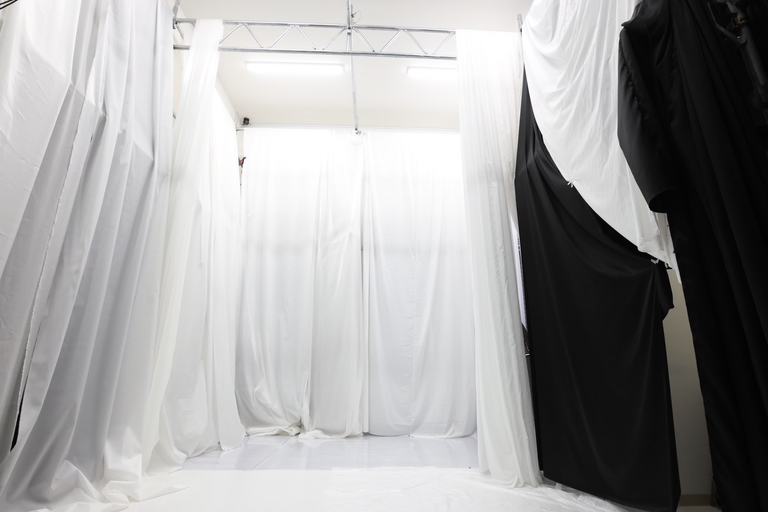 撮影機材はプロファンドベースライトが二台、アンブレラ二台、撮影用ドローン、脚立、宙吊り用のハーネス、撮影用の小道具、撮影用途に応じてクロマキーカーテン、黒カーテン、白カーテンがご利用いただけます。もちろんカーテン類などを取り外して自然光での撮影やお教室などにもご利用できます。