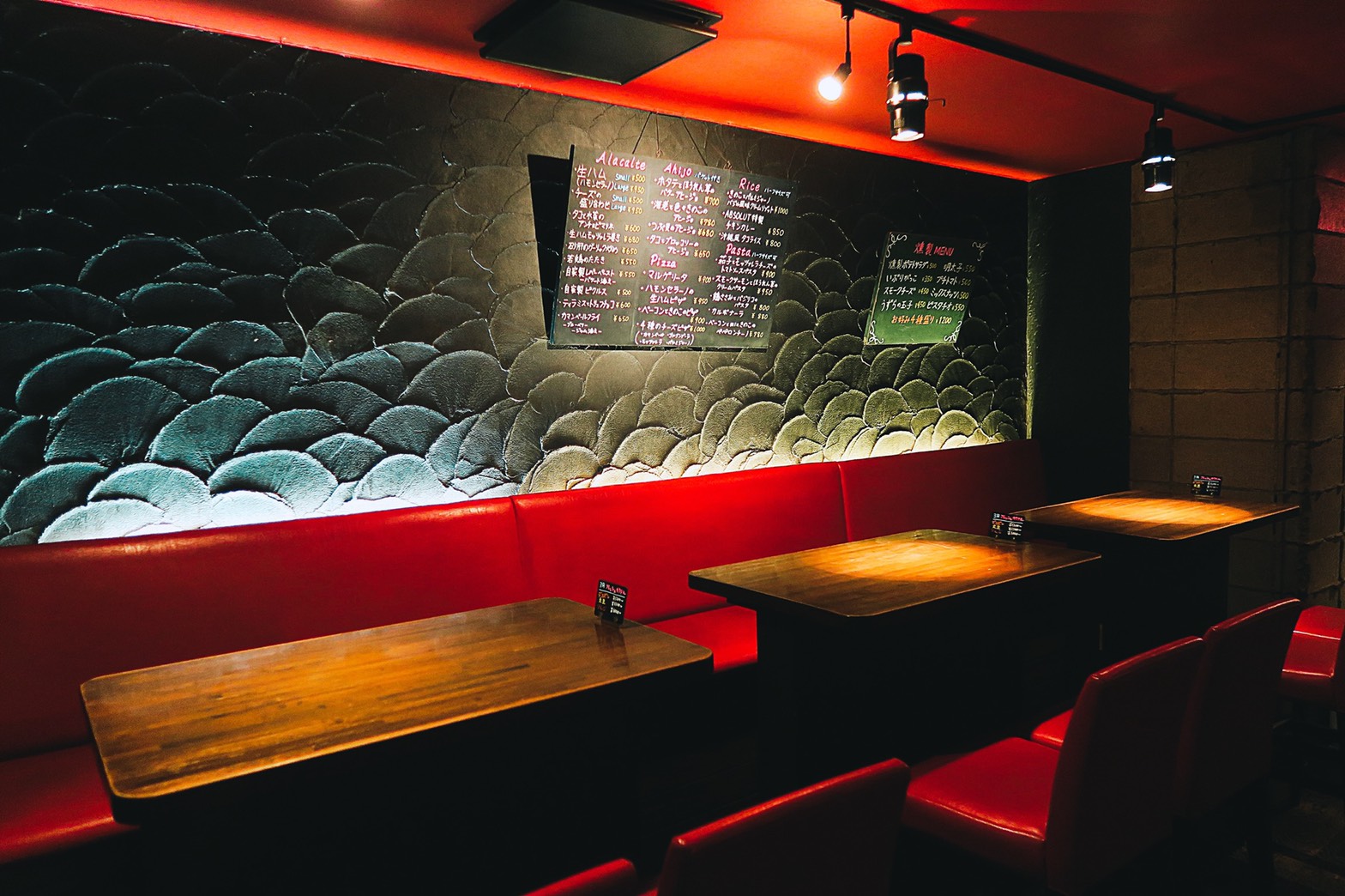 赤や黒、木材をベースにした店内は照明映えし、商品撮影やドラマ撮影にもおすすめ。