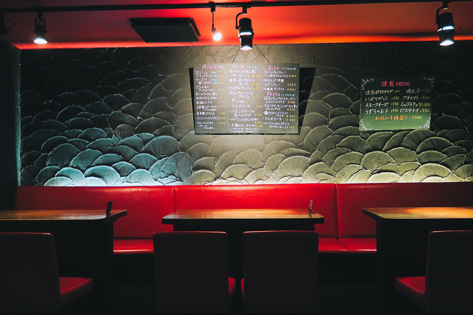 赤や黒、木材をベースにした店内は照明映えし、商品撮影やドラマ撮影にもおすすめ。