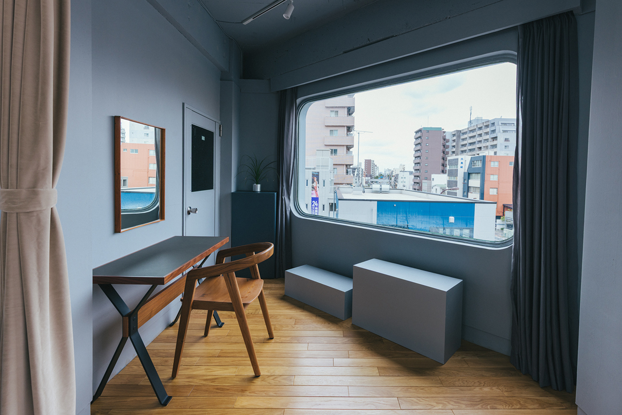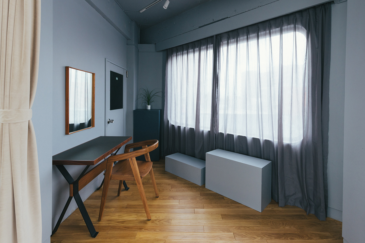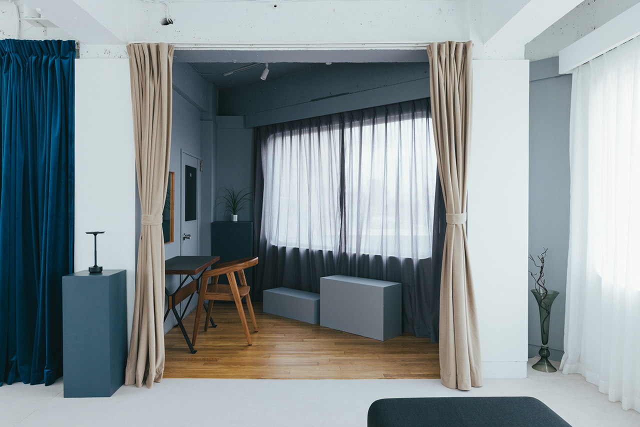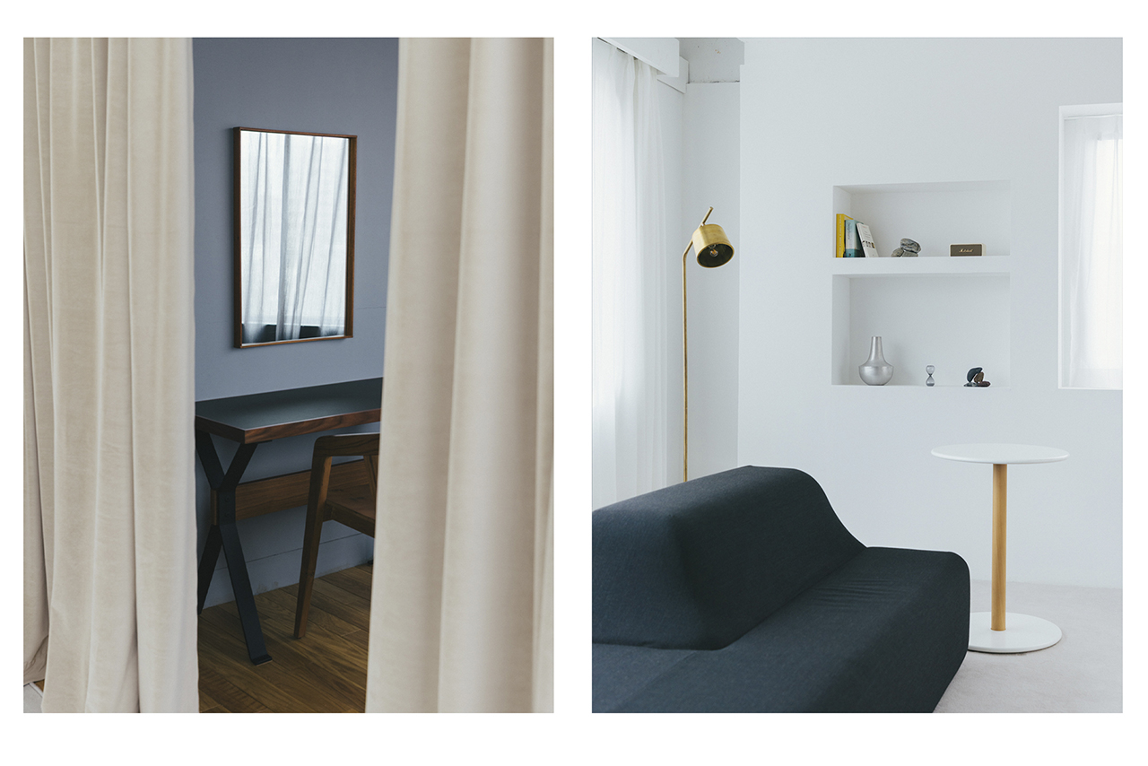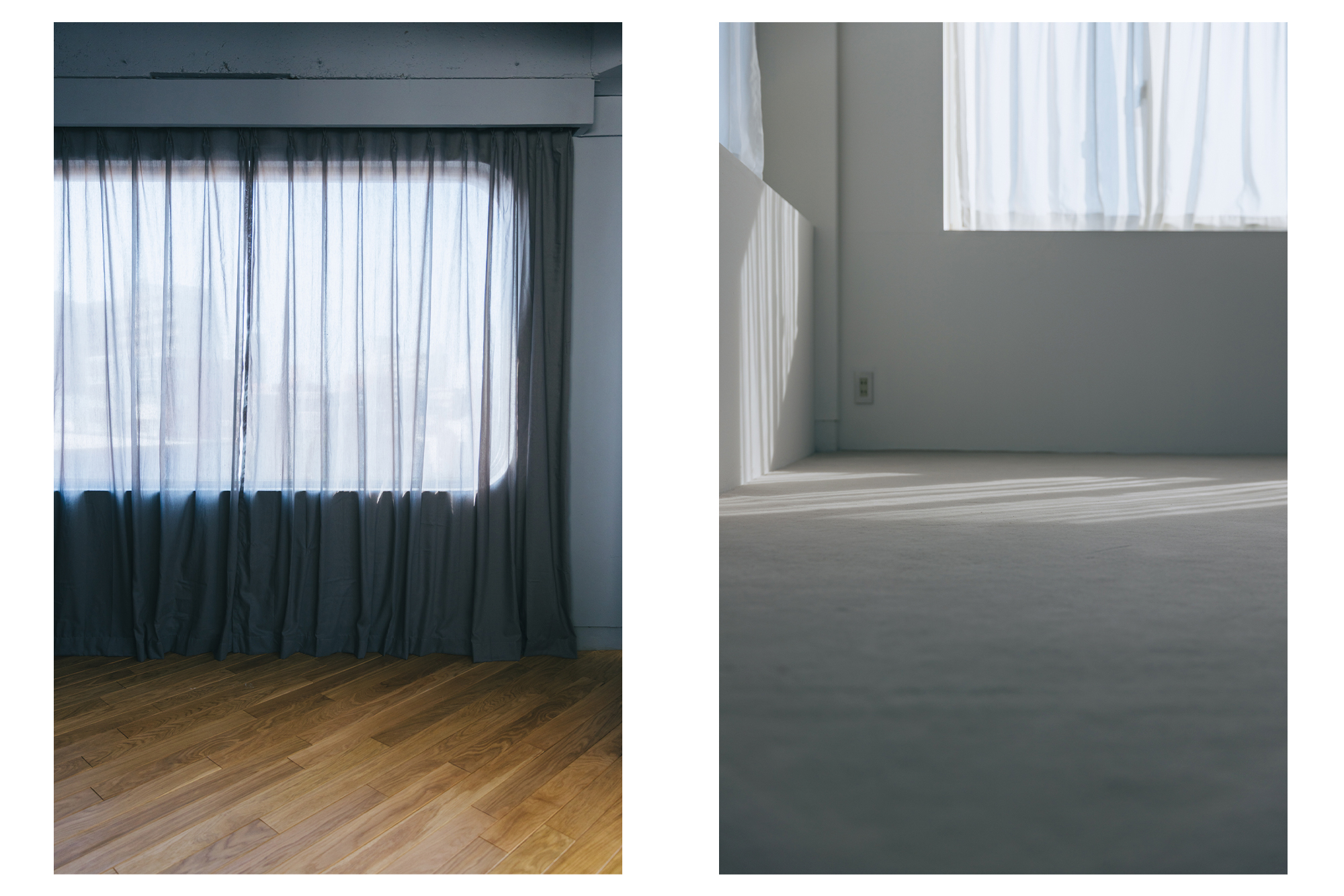 - カーペット、レトロモダン、本格プロップ、フローリング、3面自然光、カーテン