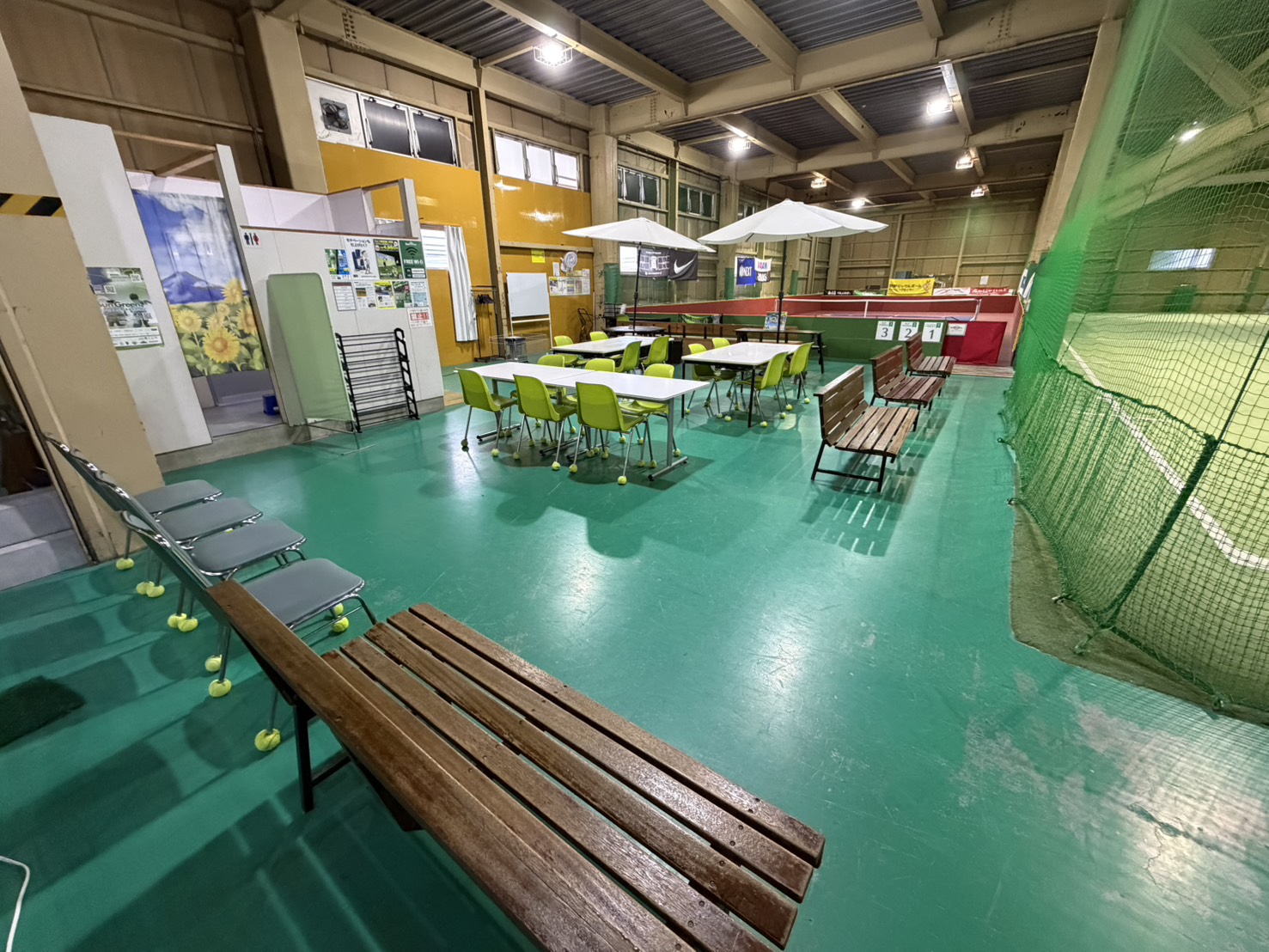 - ショートパイル人工芝、完全屋内施設、無料駐車場完備、男女別シャワー・トイレ完備、観覧席多数、自動販売機3台設置