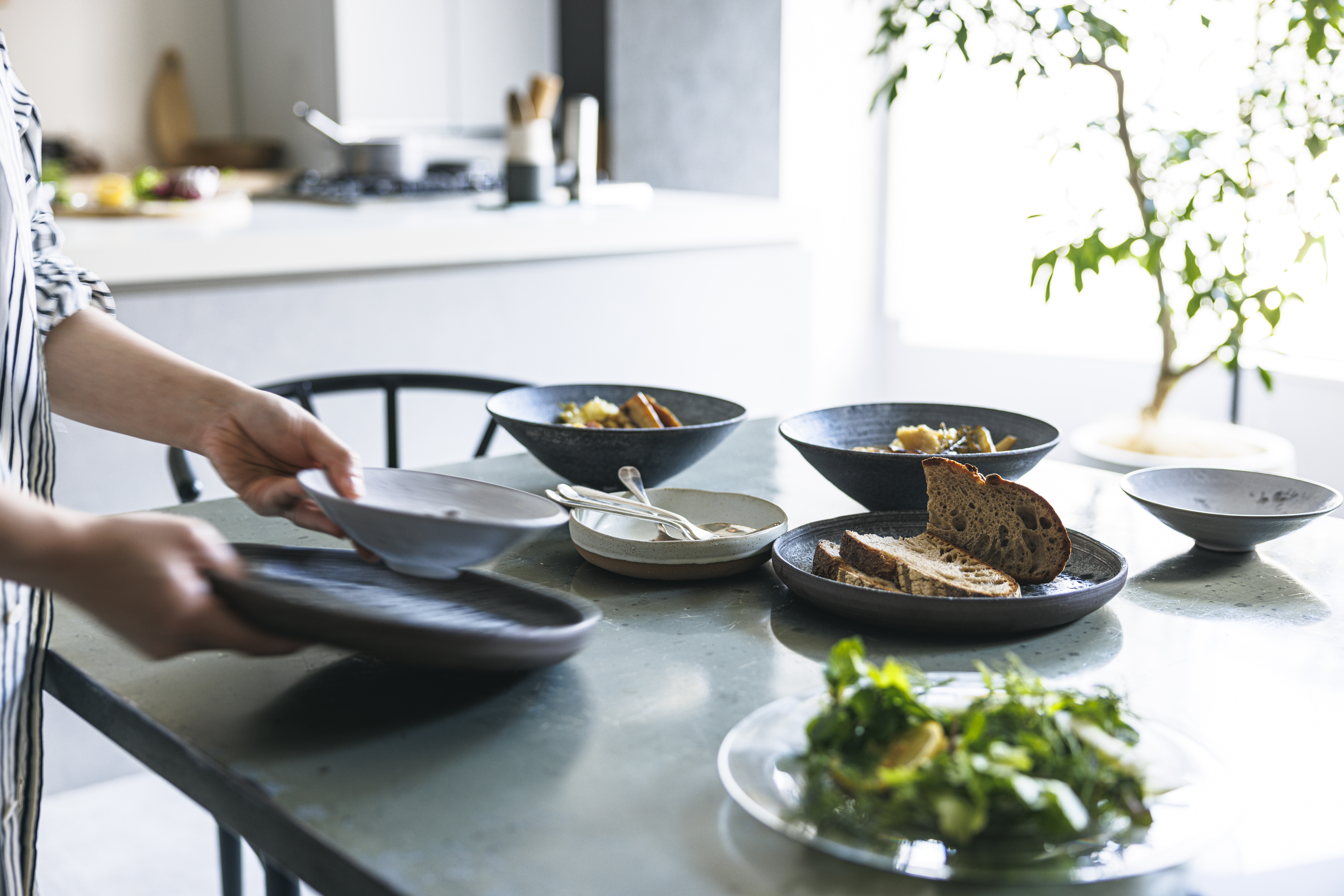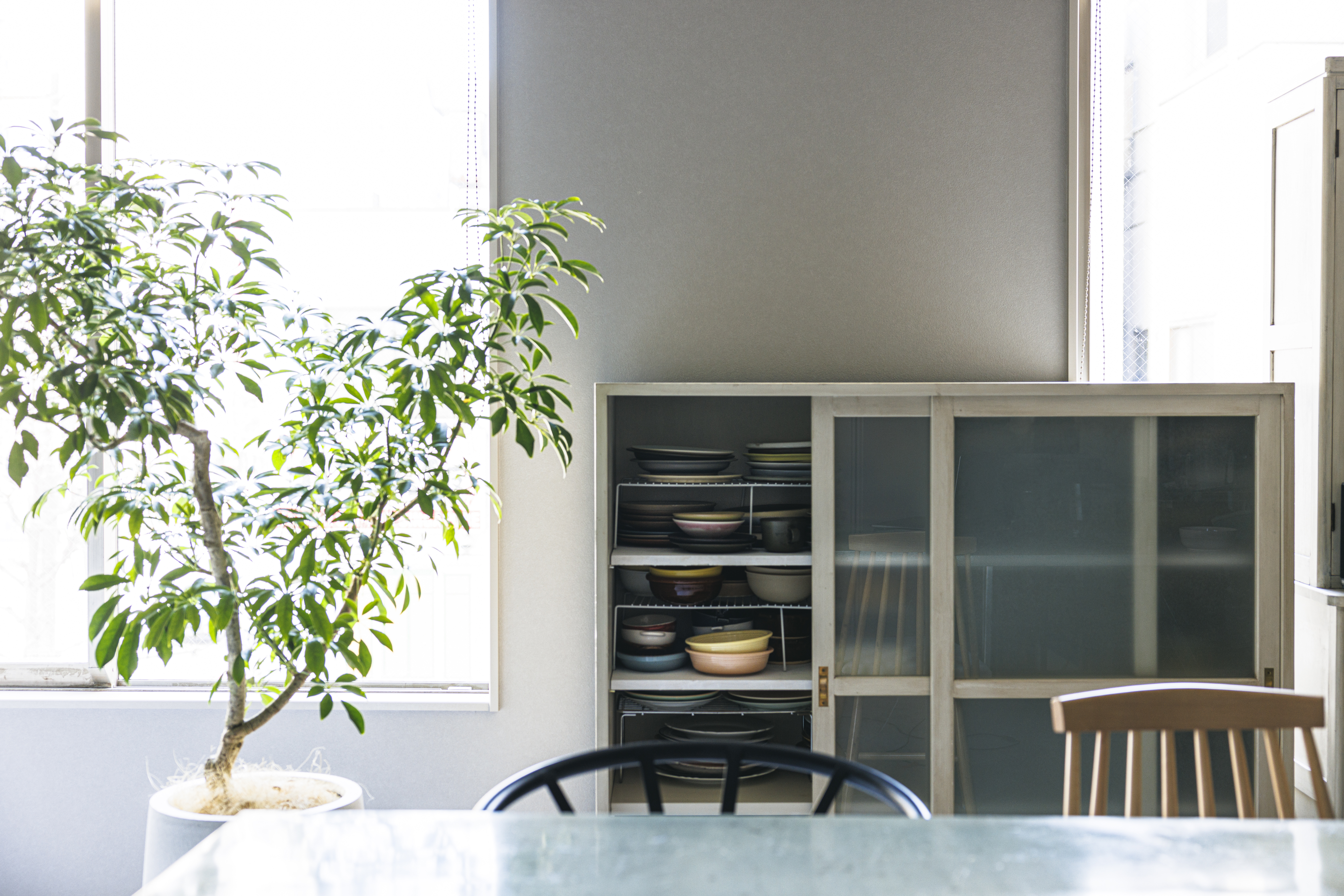 メインキッチンはアイランド型キッチン。日当たりが良く開放的で明るいキッチンは、レシピ撮影や調理シーンの撮影にぴったり。メインキッチンのスペースにはテーブルセットもあるので、一貫して食事シーンの撮影も可能です。