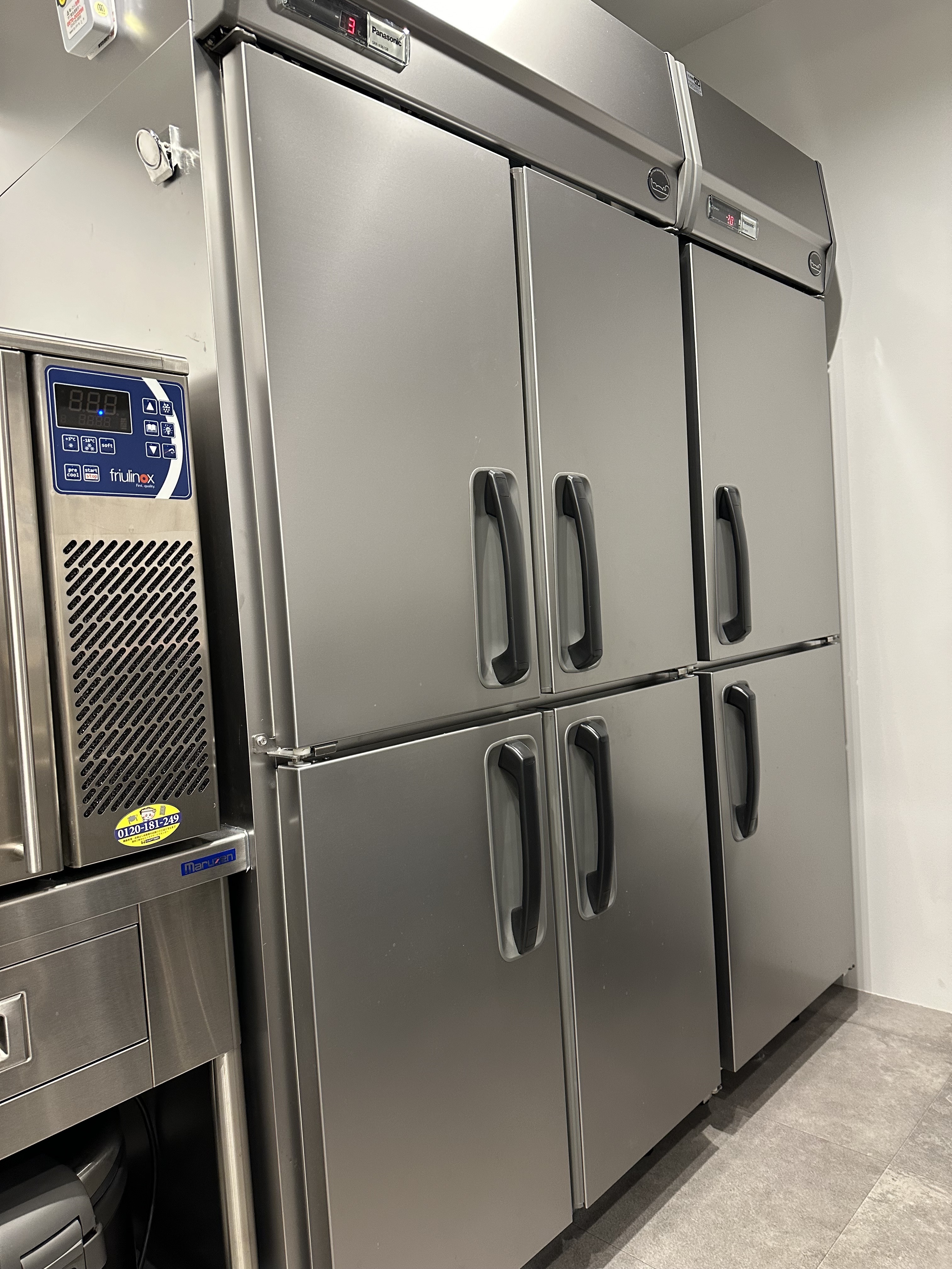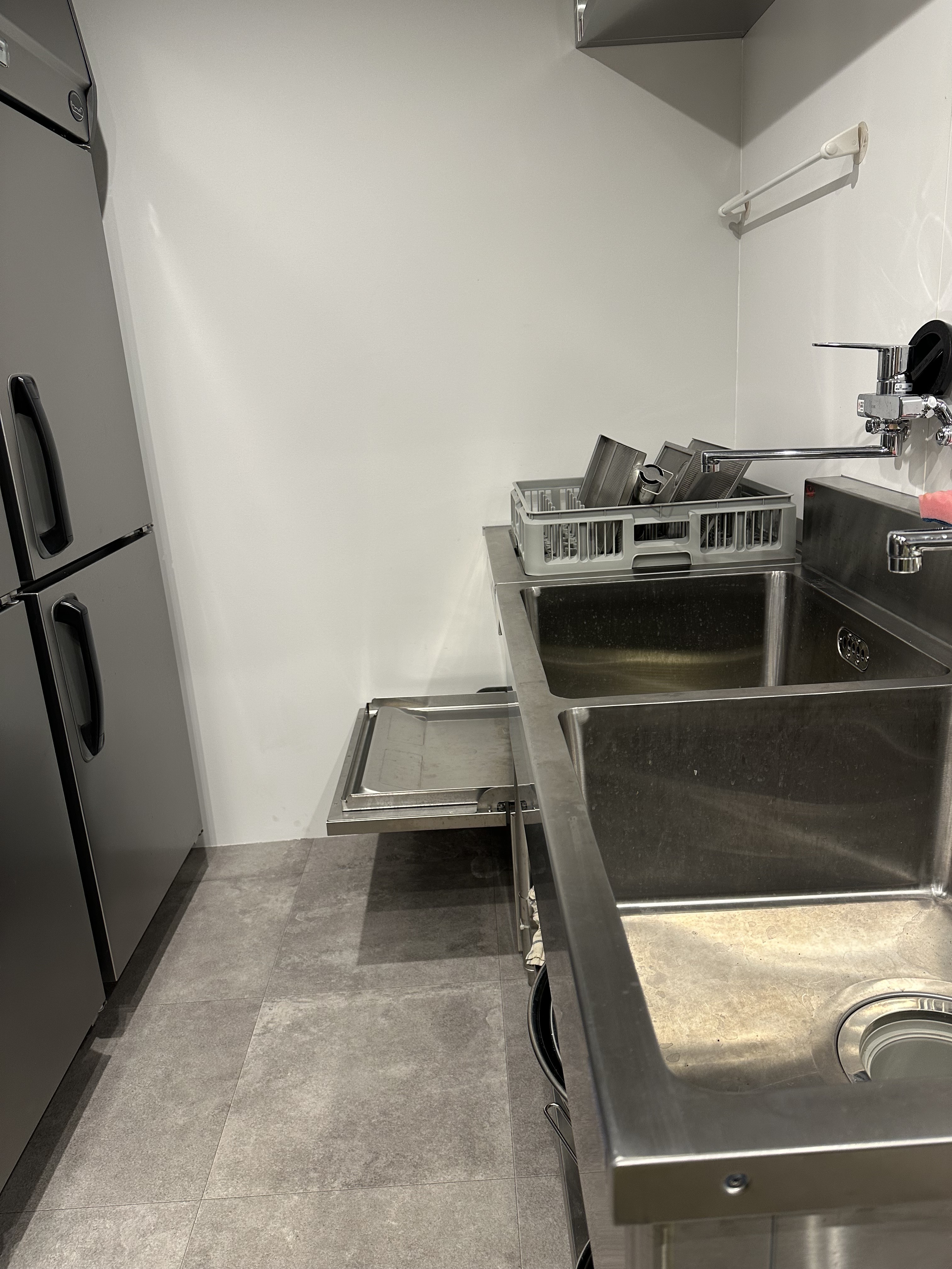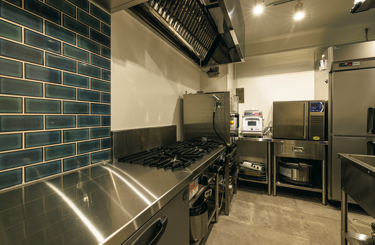 業務用キッチンには業務用冷凍庫、業務用冷蔵庫、ブラストチラー、業務用炊飯器、スチームコンペクション、真空包装機、2層シンク、食器洗浄機を備えております。飲食店営業許可証・惣菜製造許可証・菓子製造許可証を取得しておりますので、シェアキッチン、ゴーストレストラン、テストキッチンやイベントフード等にもご活用いただけます。