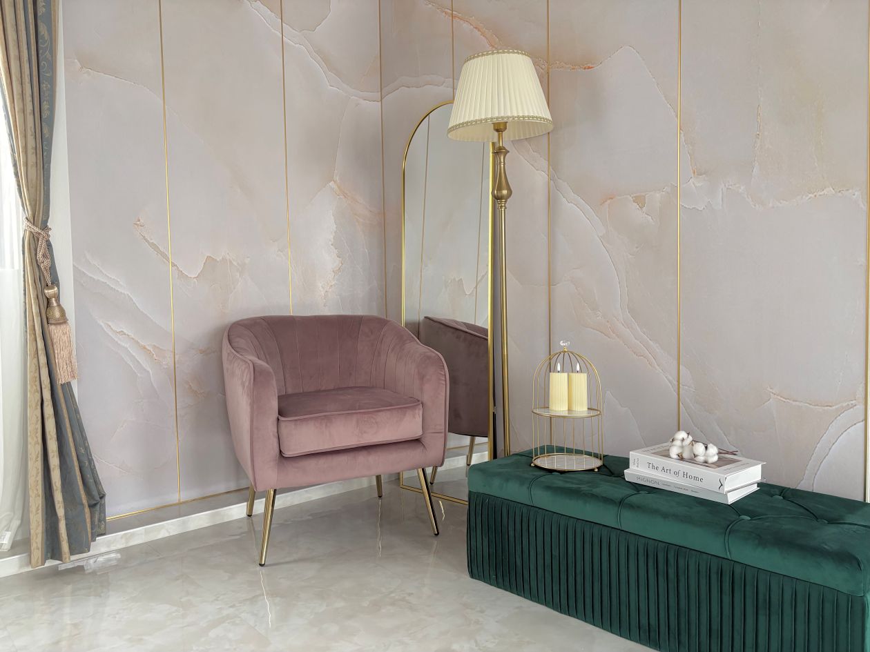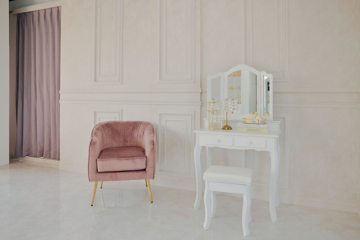 ホテルライクな内装とホワイトゴールドの壁を基調としたヨーロピアンなアンティーク空間。