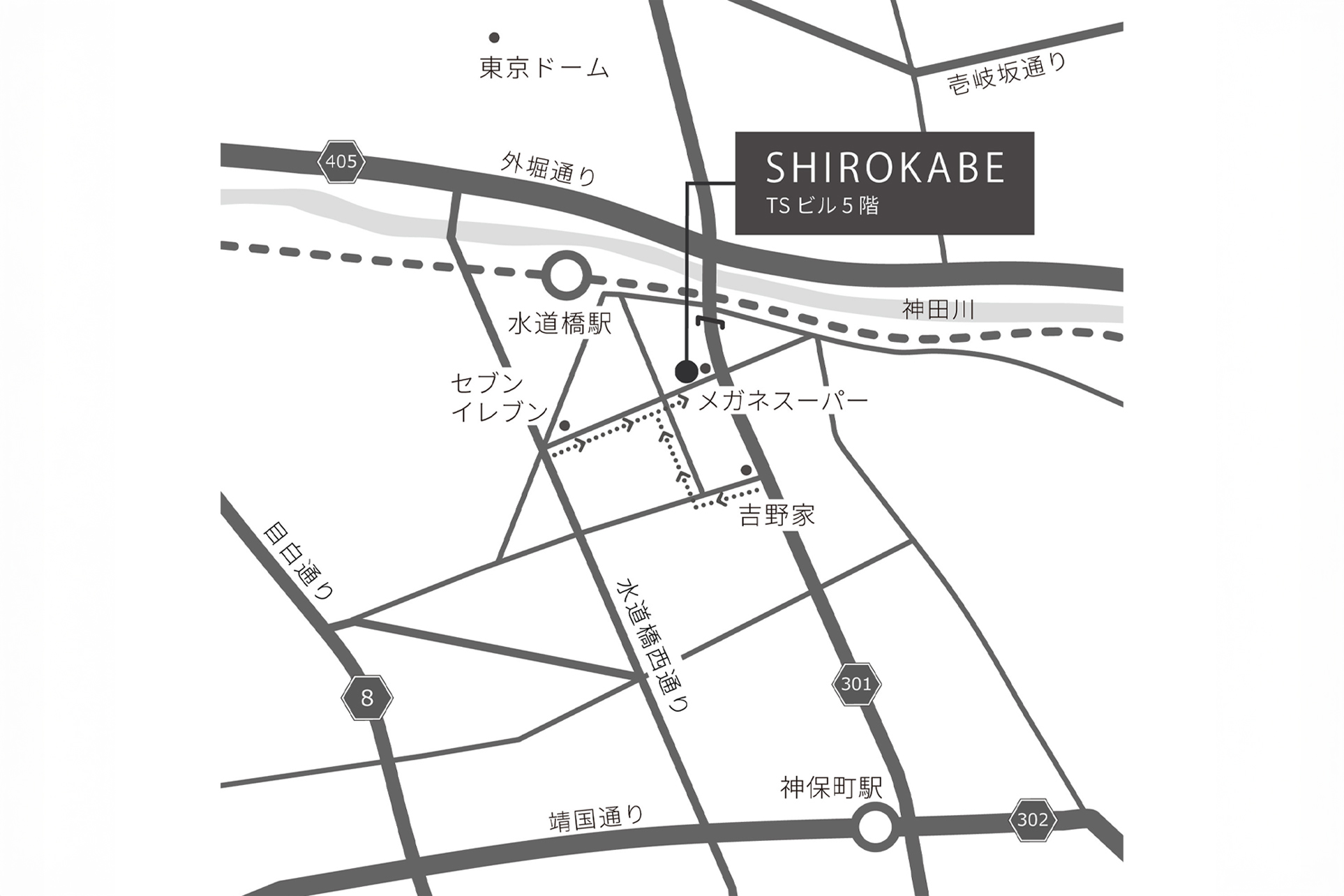 - JR中央・総武線 水道橋駅 徒歩1分、 都営地下鉄三田線 水道橋駅 徒歩4分
