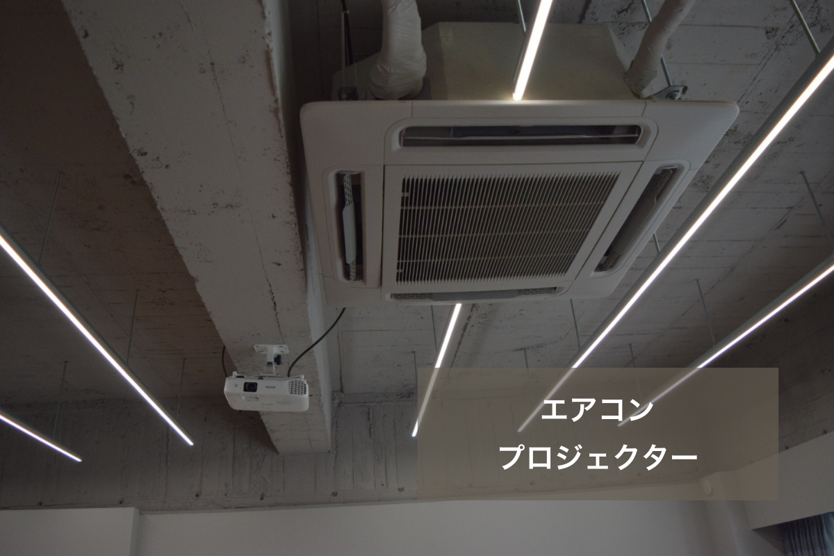 - 会議室、レンタルスペース、セミナールーム、モニター完備、防犯カメラあり、出入り自由