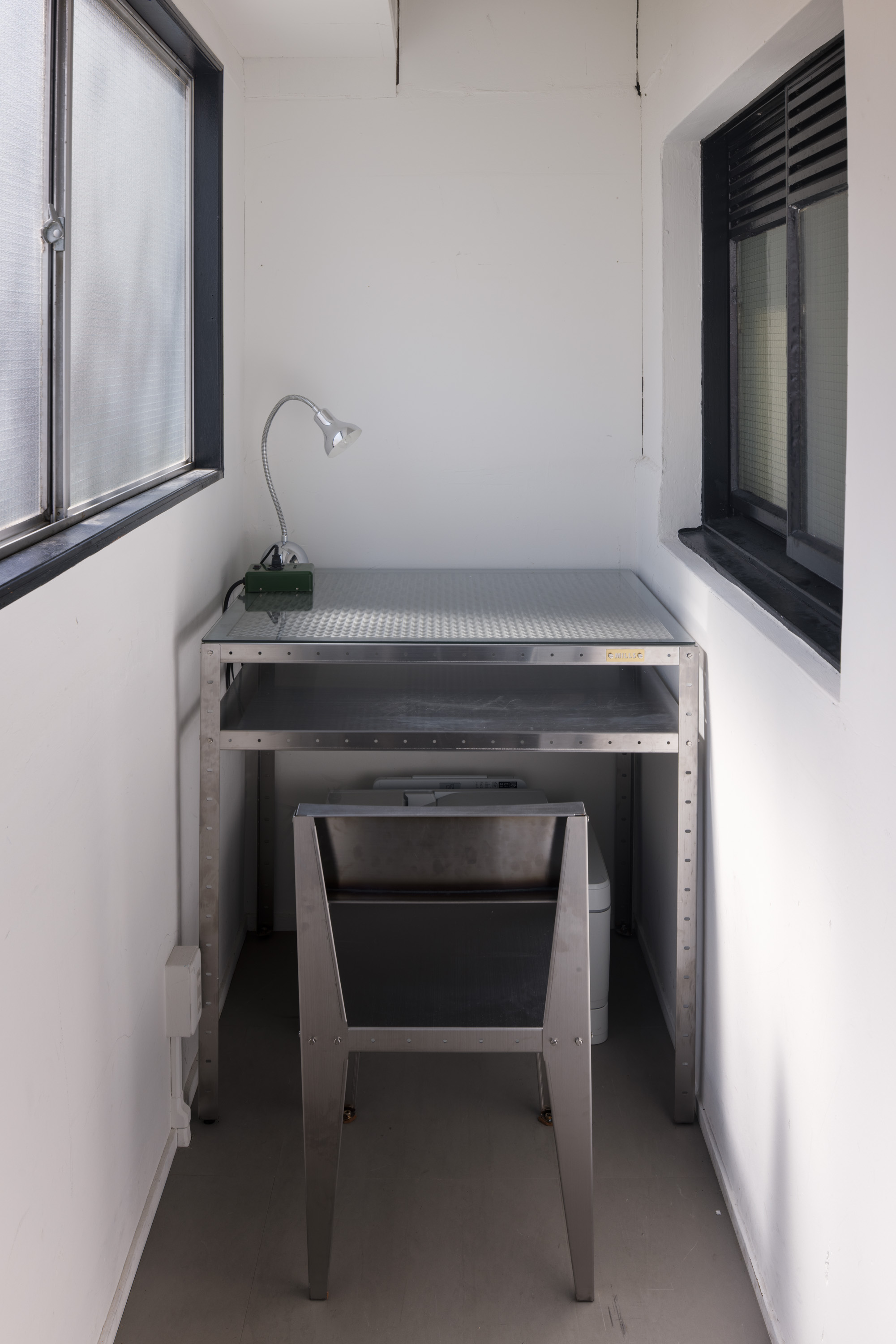 スペース内には、長尺のアルミテーブルを2台、冷蔵庫・電子レンジを完備しております。