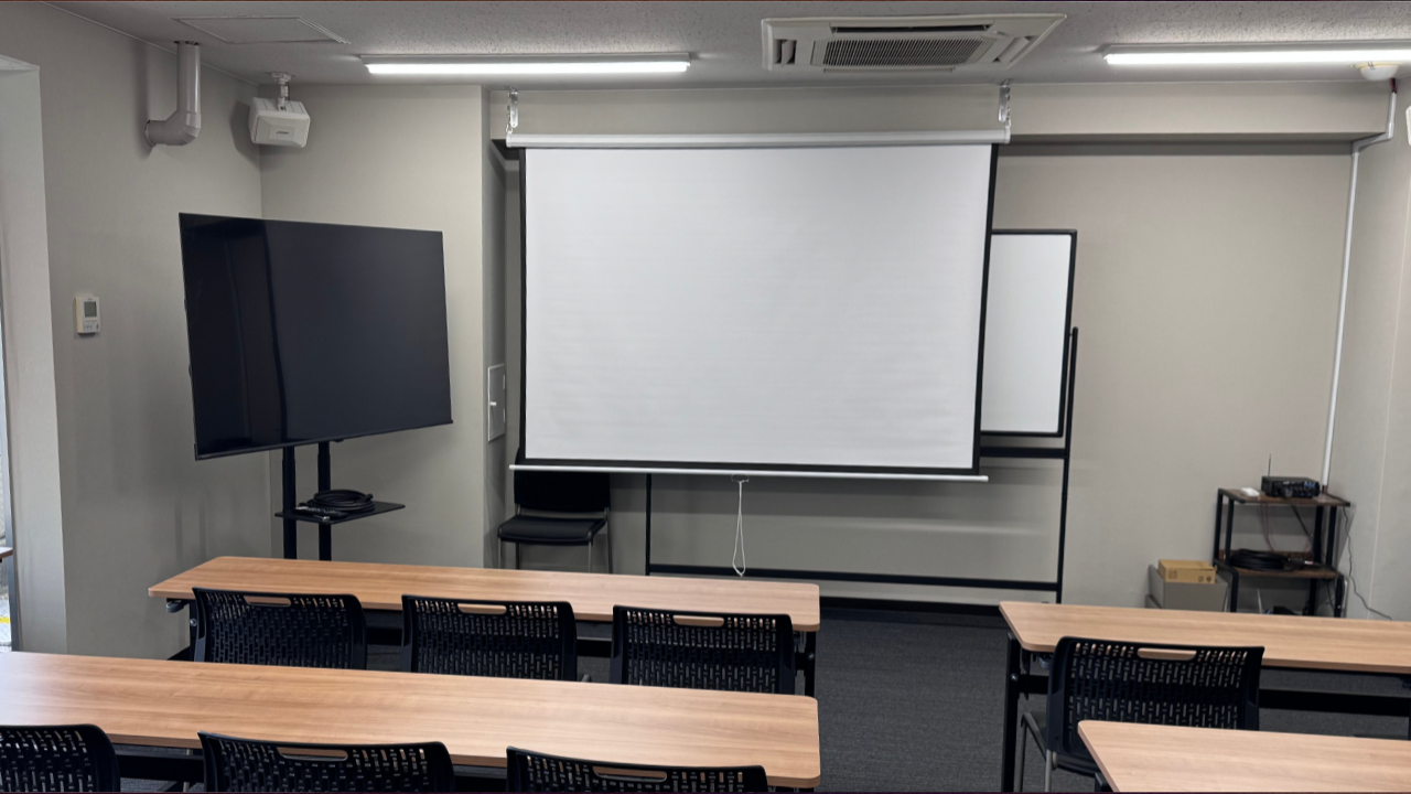 プロジェクター、マイク、ホワイトボード等の設備も完備しております
